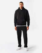 Joel is 185 cm en draagt maat L