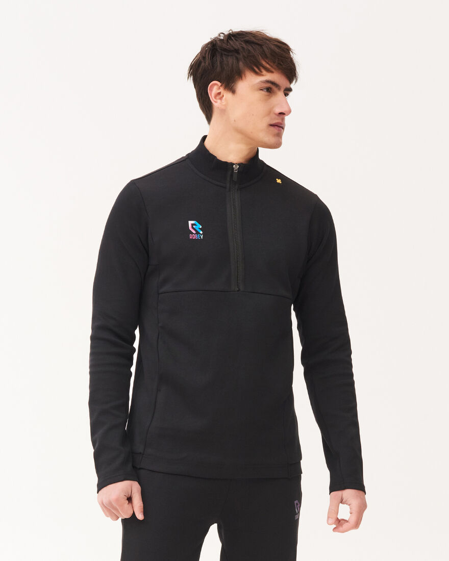 Travel in style to the match with the Robey Off Pitch Cotton Tracksuit in Black. The sweater has a half zipper and is made of soft cotton of a high value quality. The pants are slim-fit and have zippers in the pockets. The pants are also made of soft cotton of a high value quality, so it is optimally comfortable to wear.